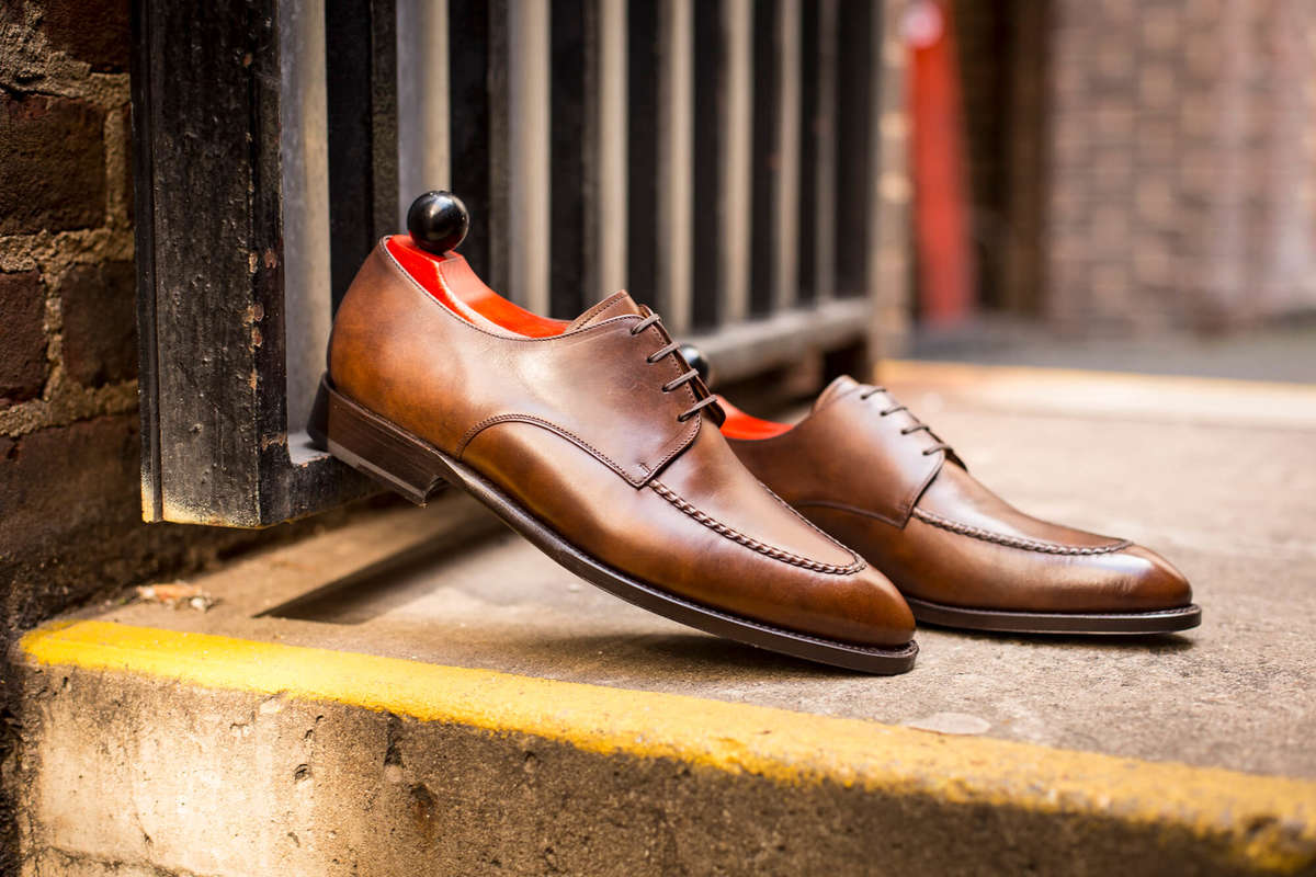 Классические туфли дерби нередко путают с оксфордами. Они, и правда, очень похожи. Чтобы уметь отличать их, нужно знать основную особенность дерби (The Derby Shoes). Для них характерен открытый тип шнурования, для которого берцы нашиваются поверх союзки. Когда ботинок при необходимости расшнуровывается, его боковые стороны свободно расходятся в разные стороны.