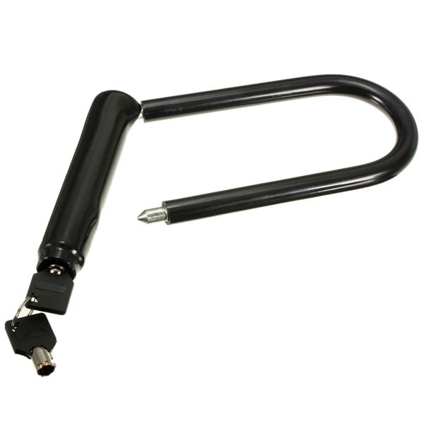 Замок в форме «U» является одной из наиболее известных и эффективных защит от воров. Прочность этой детали составляет стержень из закаленной стали очень твердый снаружи, что затрудняет его резку. Средняя часть более гибкая, что обеспечивает устойчивость к дроблению. Делится по размерам и степенью защиты, трос покрыт прорезиненным материалом.