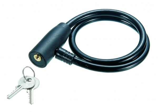 Самый простой замок, состоящий из спирально скрученной стальной проволоки. Отличаются диметром и длиной, имеют резиновое покрытие.Покрытие делают плотное и прозрачное, которое зрительно увеличивает толщину троса. Толщина стандартного троса 8–10 мм. Выбор данной защиты является самым ненадежным. Эту застежку легко перекусить бесшумно за пару секунд с помощью секатора или ножниц.